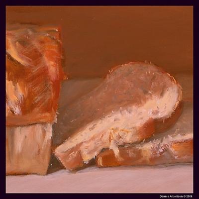 I just found your blog via John Beder\'s blog. There is some beautiful paint handling to this one; you have certainly captured the freshness, the texture in that loaf looks so soft. Posted by: Triecia on Nov 16, 2007 at 3:43 PM